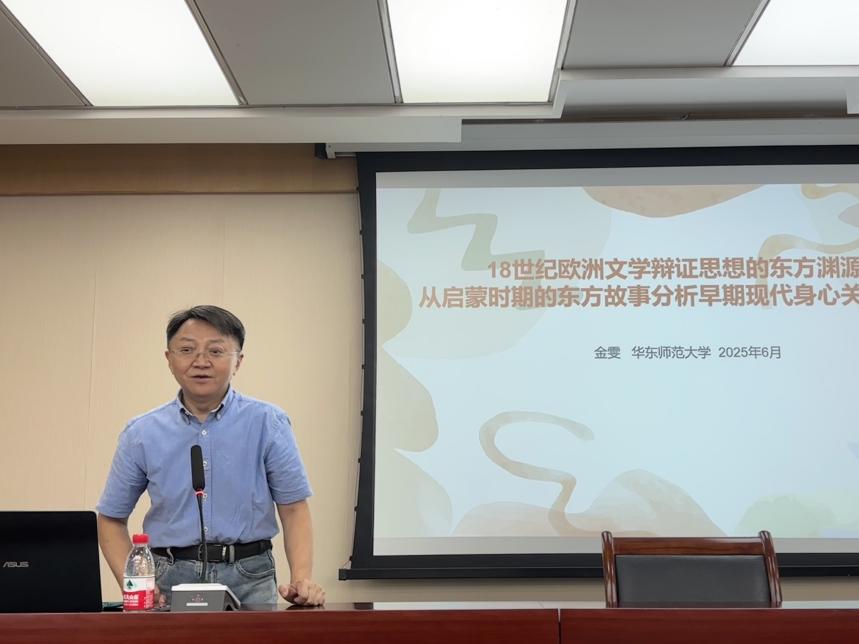 2025年6月10日,华东师范大学教授金雯应英语学院邀请为我校师生开展了题为“18世纪欧洲文学辩证思想的东方渊源:从启蒙时期的东方故事分析早期现代身心关系的演变”的学术讲座。本次讲座由四川外国语大学英语学院张旭春教授主持,英语学院众多师生参加了此次讲座。